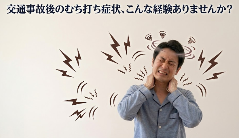 交通事故後のむち打ちや神経痛、めまいなど、症状が遅れて現れることがあります。