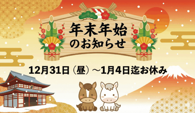 【年末年始休診期間】 2025年12月31日(水)午後 ~ 2026年1月4日(日)